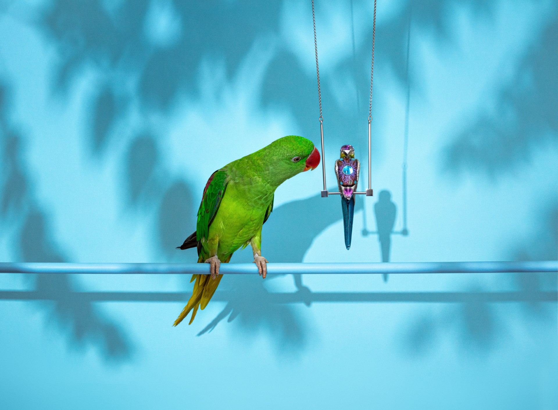 Through its form, the 16th Sovilj's collection, called Alexander, glorifies a specific group of such intelligent beings, parrots, actually the first ones brought to European soil, more precisely to ancient Greece, the cradle of the democratic tradition based on the idea of the free individual. Parrots are creatures that in coexistence with humans are restrained by a cage and often with folded wings, but they are also social beings, flock creatures who, because of the love they are able to give and receive, have decided to stay, not to fly away. Also, parrots are beautiful winged messengers that reflect our words, and therefore symbolize and teach us ideas about the power of words in creating our reality.