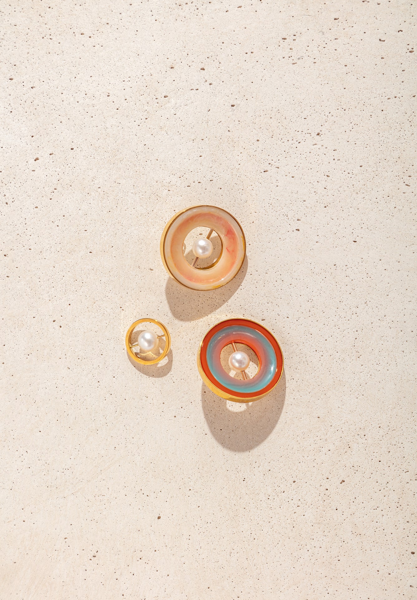 First Lady ring and earrings symbolize the strength and power of feminine energy that is Creation itself, as feminine energy is creative and inspiring - it's the energy that creates Life. It is centered in a pearl, and radiates through Saturn-like resin ring that represents different frequencies of fluid Mind, and the medium where energy morphs in Your final thought / decision /creation.