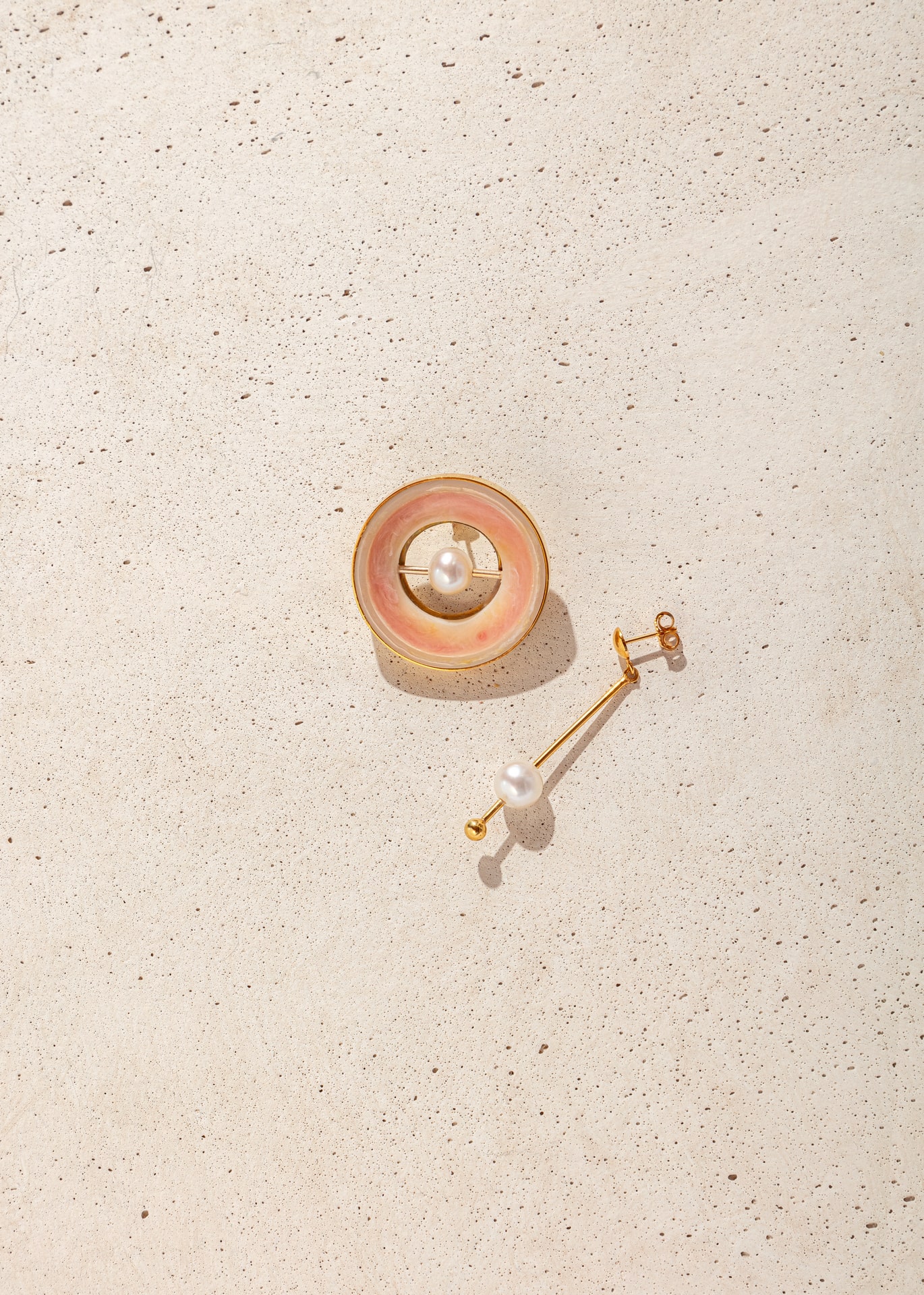The collection Metamorphosis includes two lines: one in precious metals and pearls, while the other handcrafted in precious metals, pearls, designer's favorite resin and enamel. Each piece is carefully handcrafted in Nenad Sovilj's atelier by author himself, and golden / silver parts in goldsmith's studio of Keckes family, one of the unfortunately rare master goldsmiths from Zagreb who cherish the beauty of this ancient craft, fatto a mano.