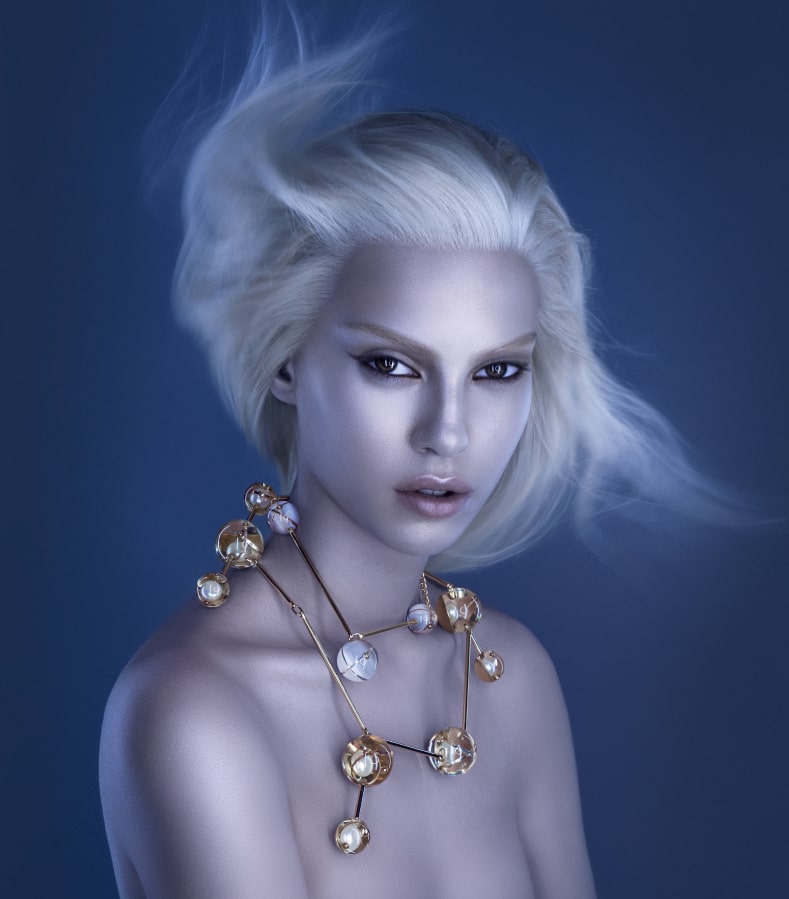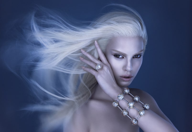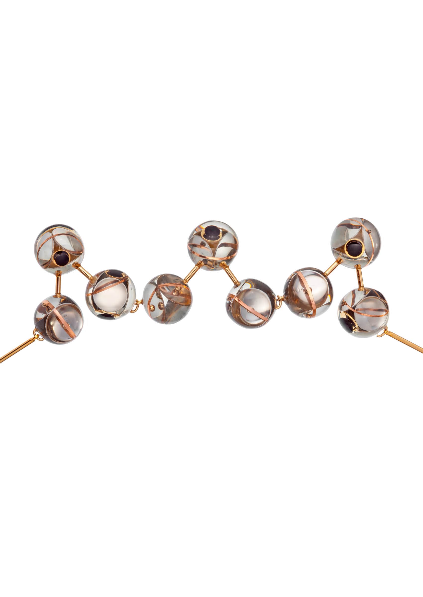 To celebrate the 10th anniversary of his work, the designer held an exhibition at the French pavilion in Zagreb, where a gigantic sculpture of the glucose molecule, made by the designer for the occasion, was used as a display for his jewellery collection. Very simple in form, but extremely complex to make, the collection glorifies both the micro and the macro cosmos.
