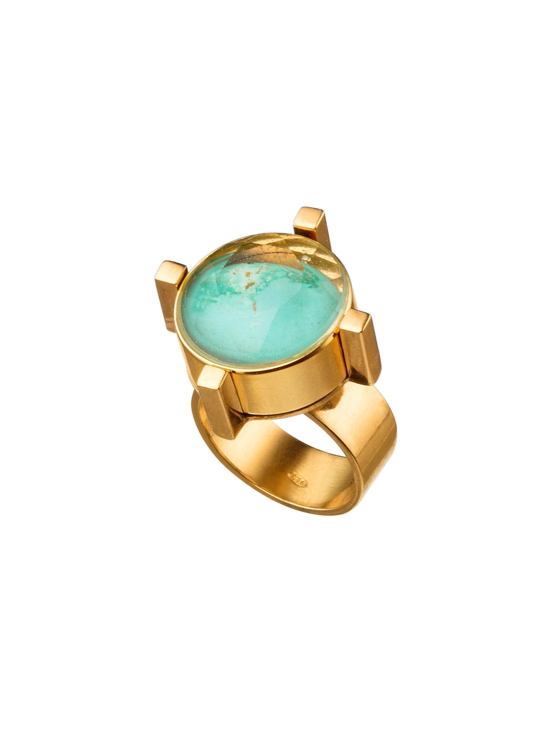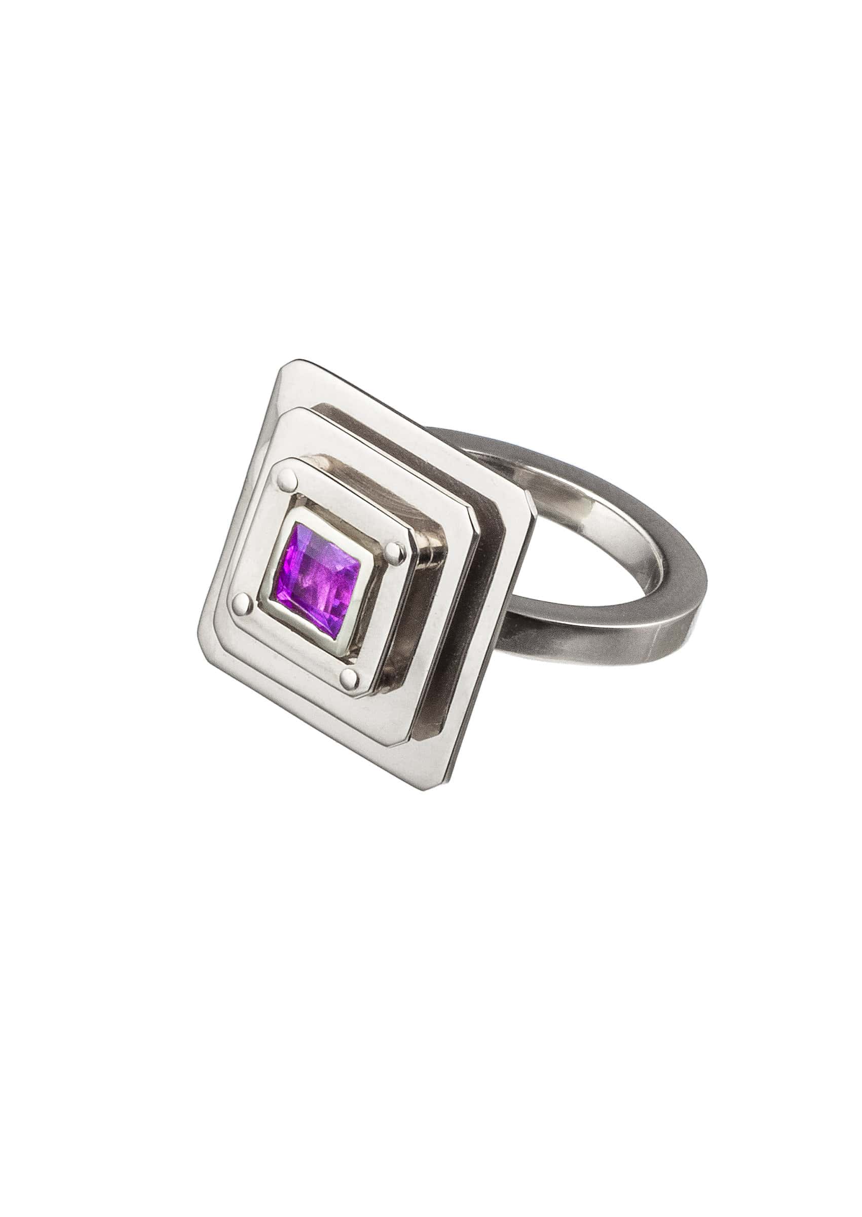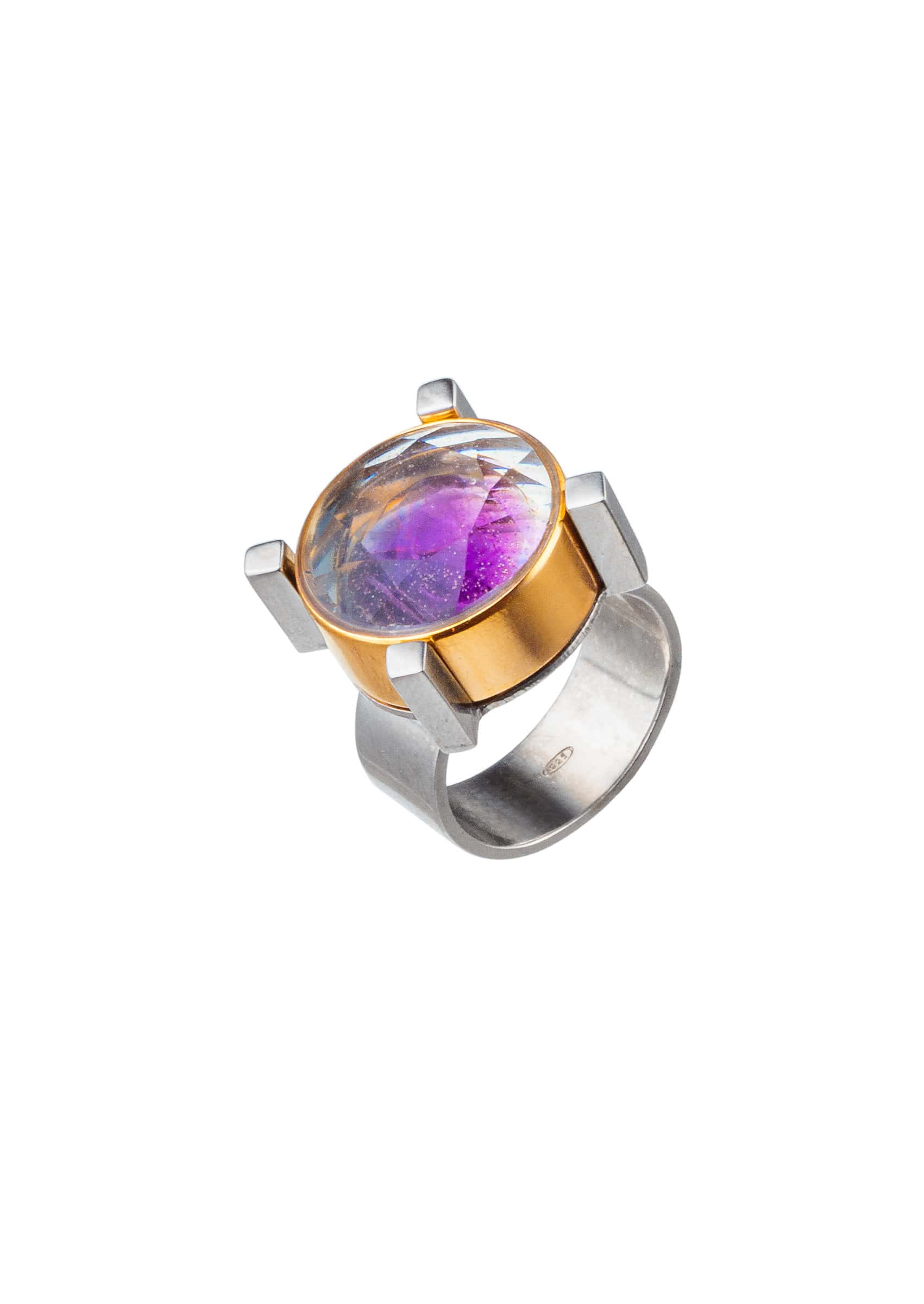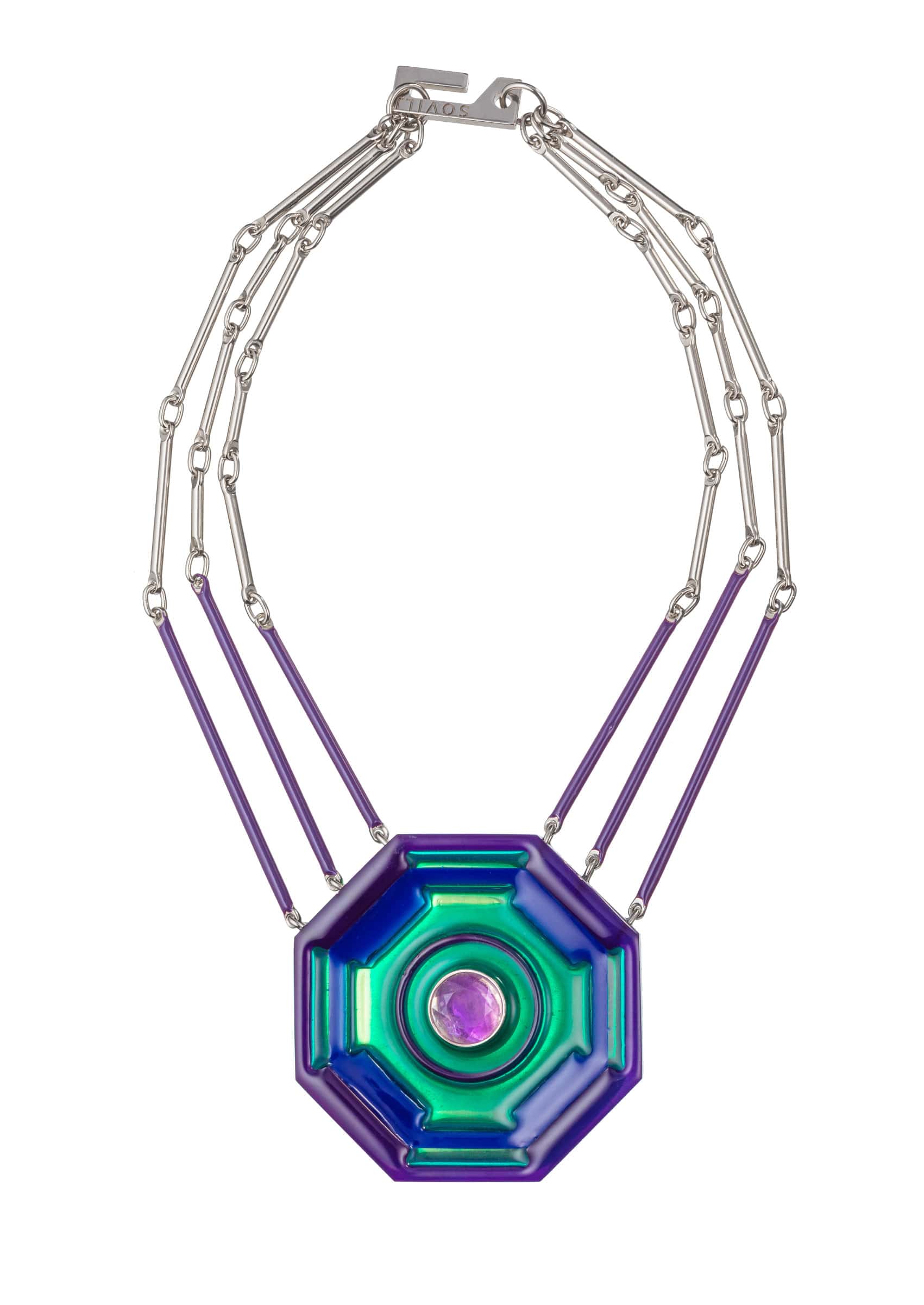 Like an alchemist in a game, he created strong geometric, sculptural pieces of jewelry that contain hidden symbols within.