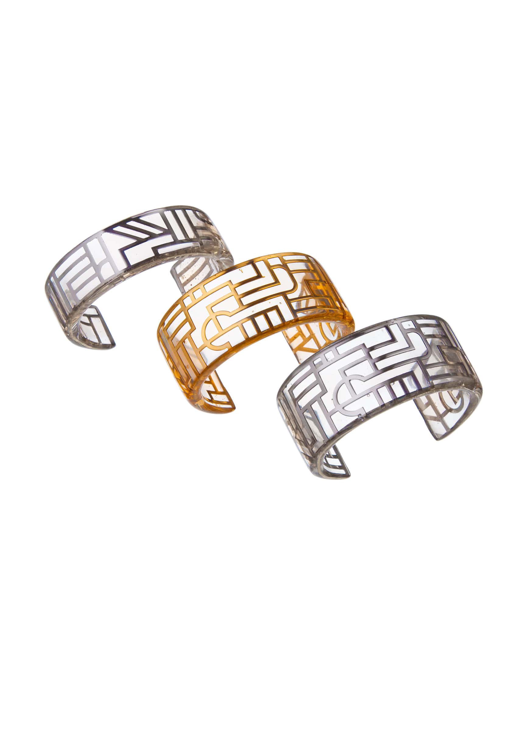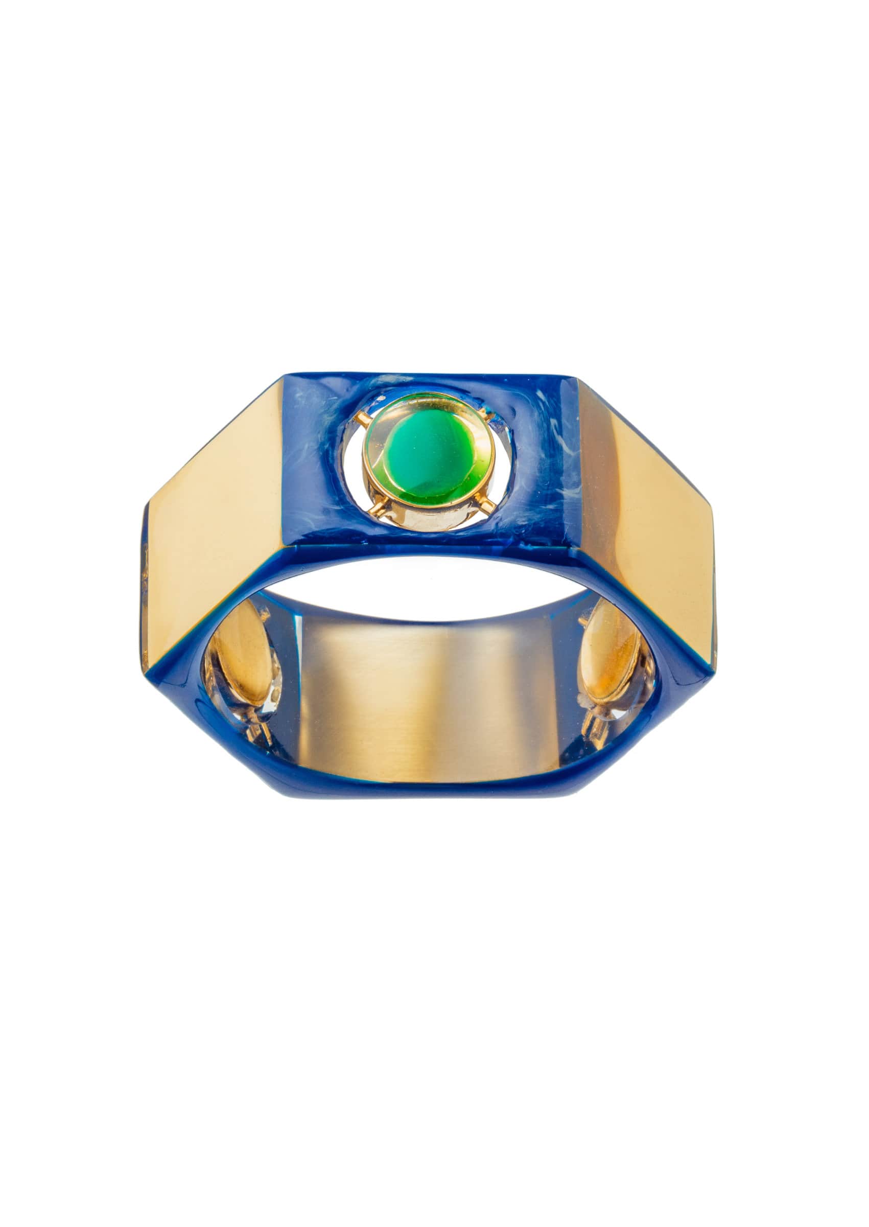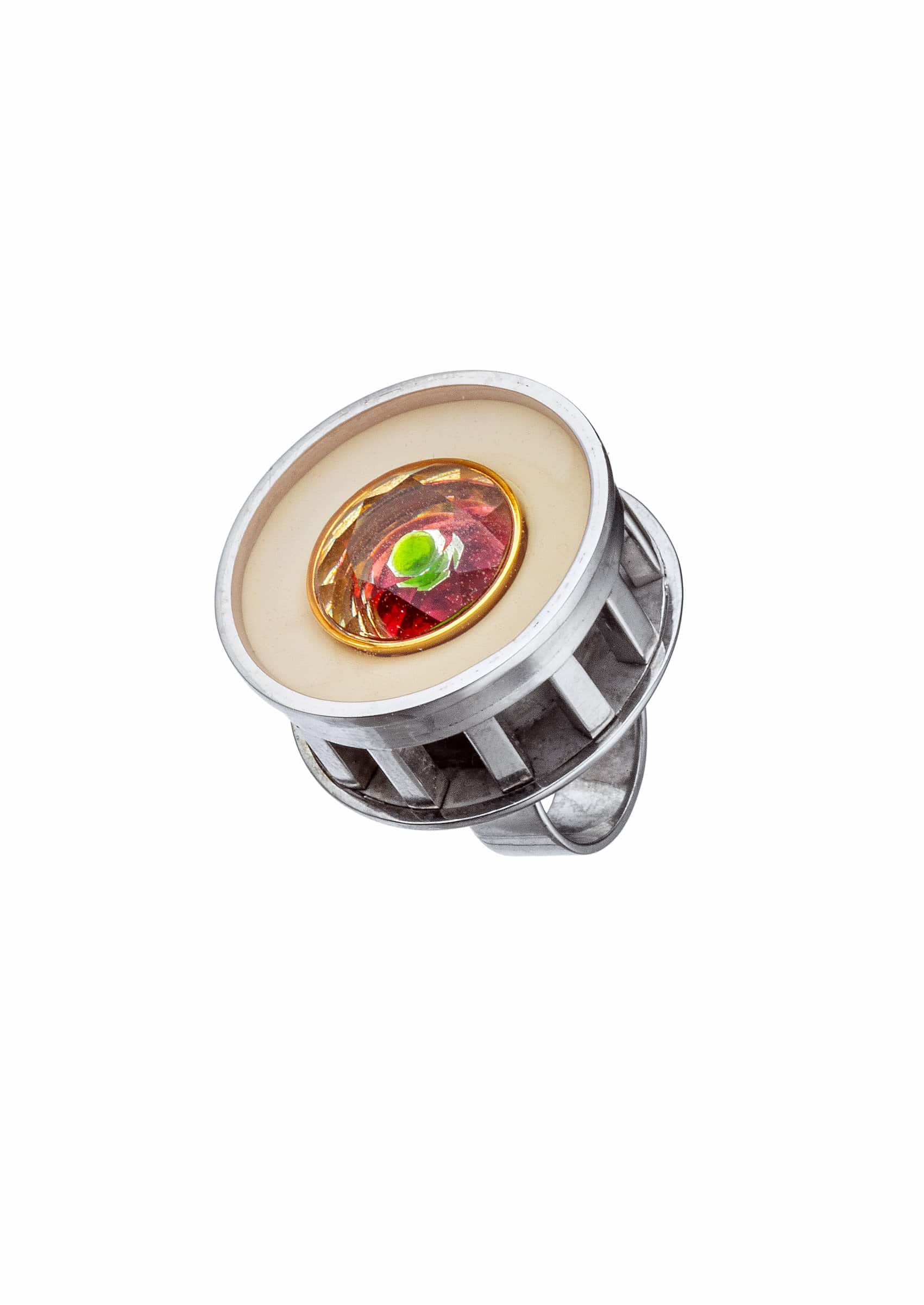 Like an alchemist in a game, he created strong geometric, sculptural pieces of jewelry that contain hidden symbols within.