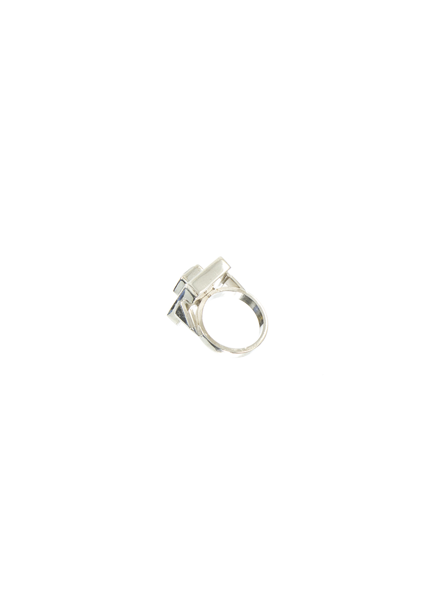 Phoenix silver ring is handcrafted in silver, black onyx as a grounding stone and rocky quartz as a stone of spiritual growth, spirituality and wisdom.